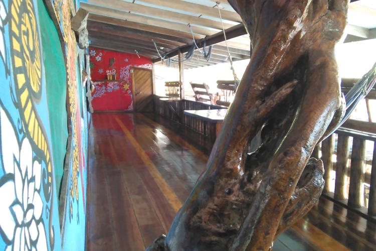 Inside the hotel, there are many places to relax. The reception area is more like a living room, with a gigantic sofa, people to chat with, and our beach-deck with the view of the ocean. The large deck upstairs has a wonderful ocean view too, with hammocks and sofas - perfect for reading or taking a siesta. In the back, gardens filled with local plants and flowers line the walkway. A covered sitting area offers another opportunity to relax, or meet and enjoy the company of others.