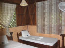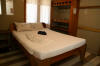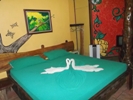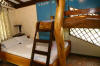 full size bunk  beds (Flintstone design) and are fully furnished with artistic rustic wooden designs. From your private balcony you can fully enjoy the view of the ocean, the sunset and the jungle.  No AC in the upstairs suites. For someone who appreciates fine artistic wood work and nature.