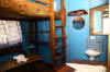 screened windows, fan and rustic designs. The private bathroom is big and has a hot water shower.  Outside the cabin, you have a private